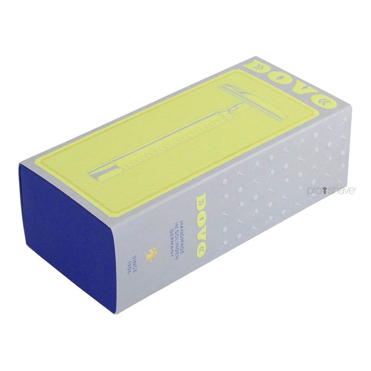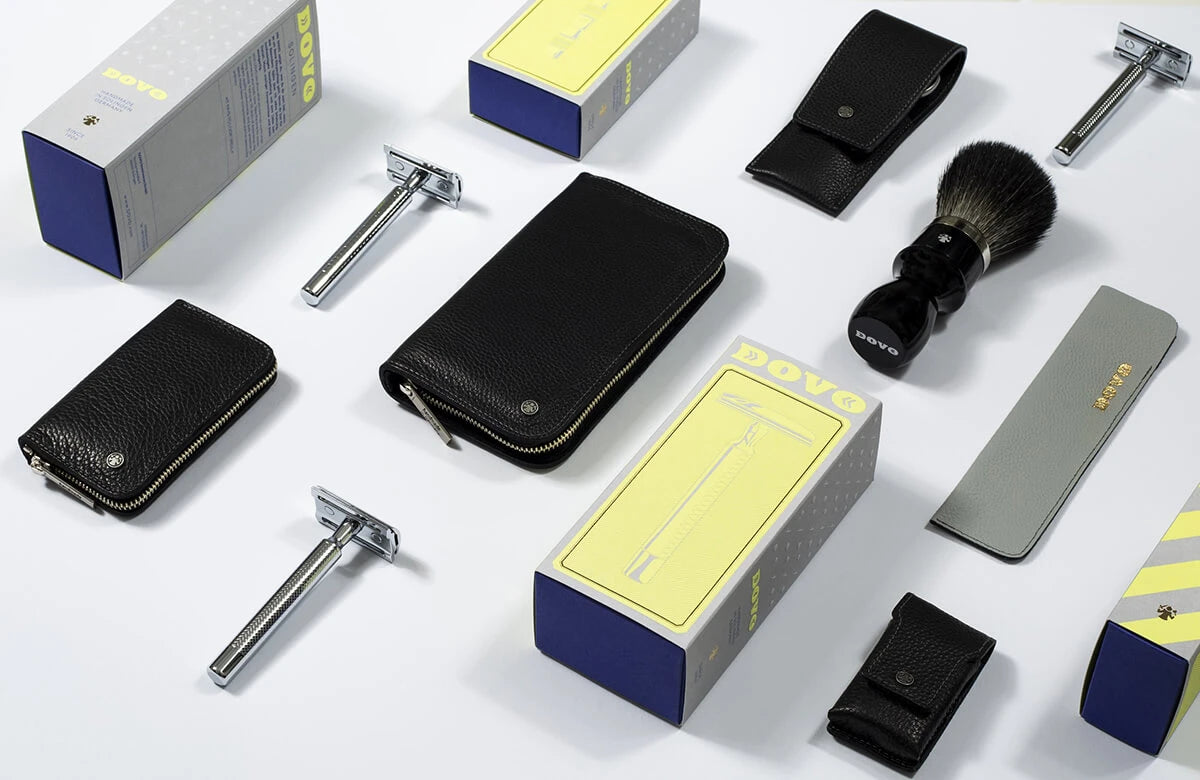 Säkerhetshyveln levereras i en vacker kartong med logotyp och ett Dovo Platinum rakblad ingår, så att du är redo att börja din rakresa direkt.