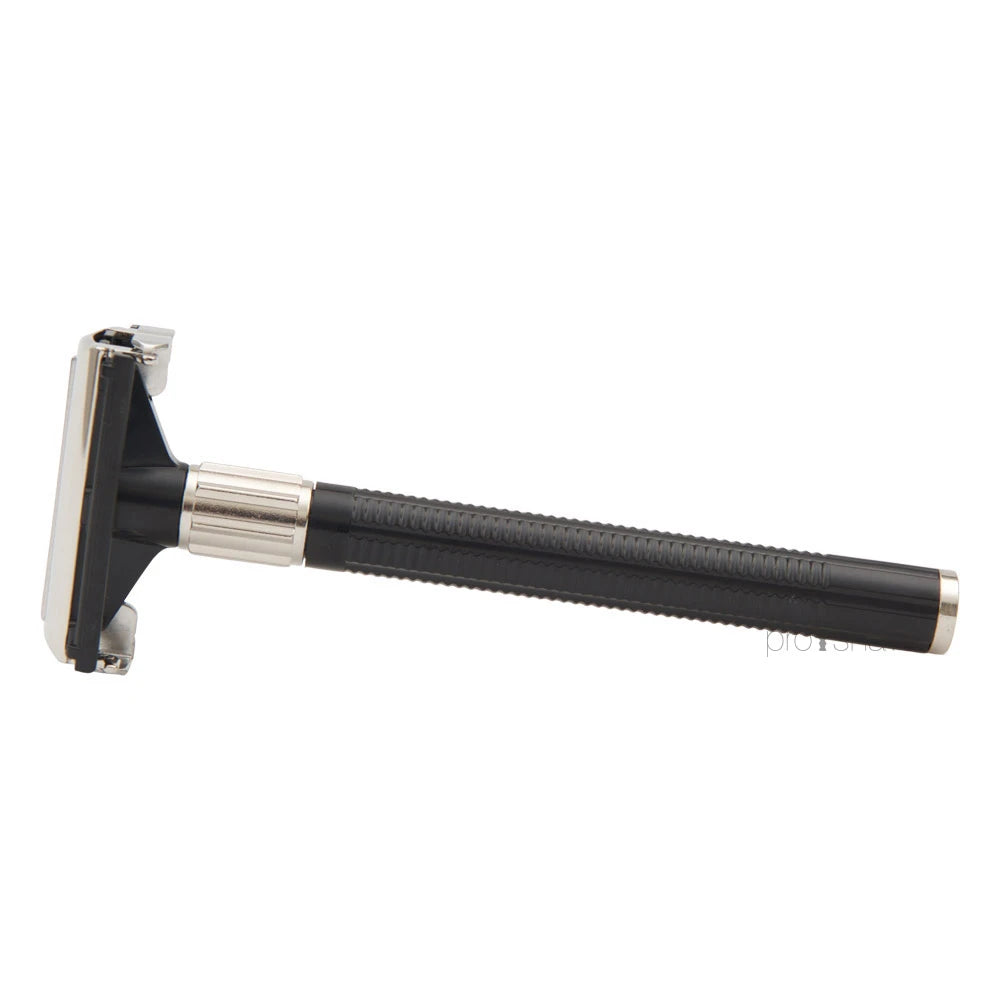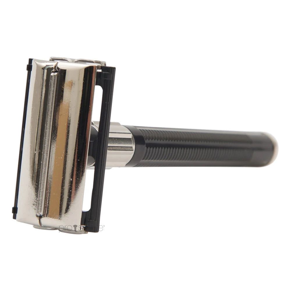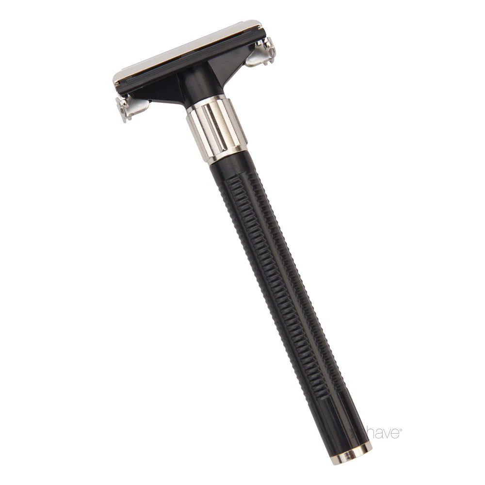 Rakhyveln är utrustad med en praktisk fjärilsmekanism som gör det snabbt och enkelt att byta Rakblad. Det är säkert, effektivt och perfekt för nybörjare som vill ha en problemfri start på Rakning.