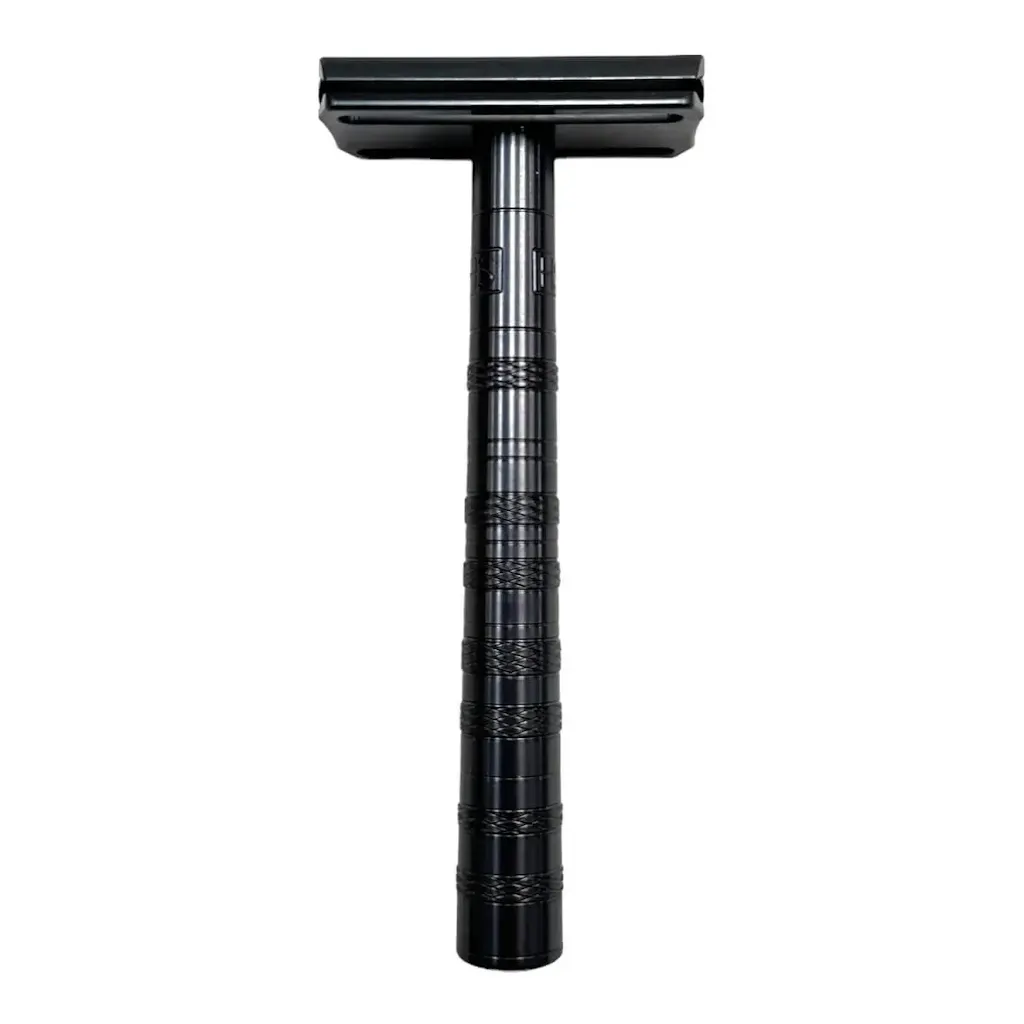 Säkerhetshyveln väger bara 37 gram, vilket gör den lätt och enkel att kontrollera, även för längre rakningar. Det räfflade diamantmönstret på handtaget ger ett fast och bekvämt grepp - även med tvål eller vatten på händerna.