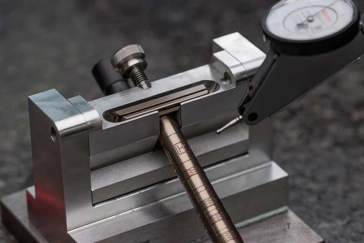 Designen är uppbyggd kring en fast bladvinkel på 30°, vilket är känt som den ideala vinkeln för våtrakning. Bladet är mekaniskt pressat i denna vinkel och har minimal exponering. Detta resulterar i en fast och stabil bladkant utan böjning - och en Rakning som glider mjukt över huden med minskad risk för skav och irritation.