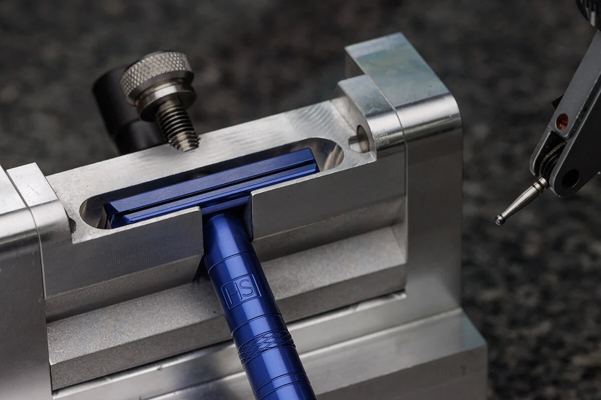 Rakhyveln är tillverkad av aluminium av rymdkvalitet och tillverkas i Ontario, Kanada - på en anläggning som normalt tillverkar komponenter till satelliter. Den följer de krävande flyg- och rymdstandarderna AS9100 för att leverera precision i toppklass. Det betyder att du får en Säkerhetshyvel som håller i åratal - och minskar användningen av plast i din dagliga groomingrutin.