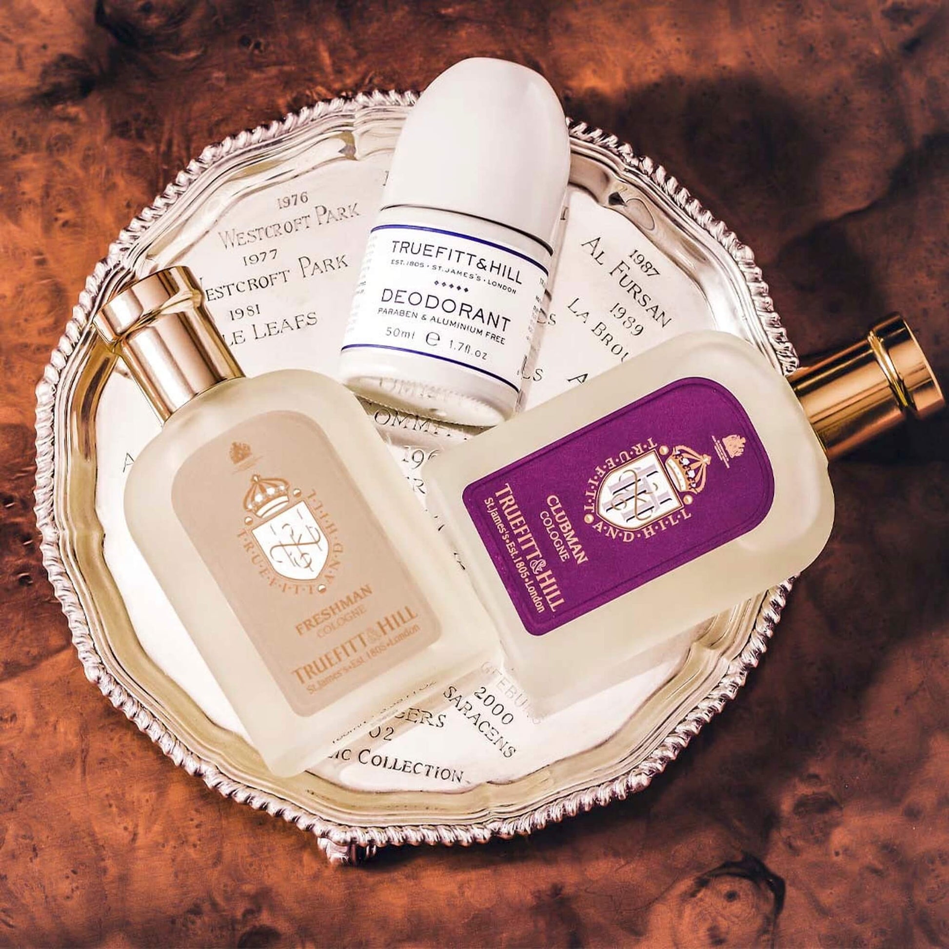Clubman Cologne från Truefitt & Hill är en elegant och tidlös doft som kombinerar klassisk brittisk tradition med en fräsch och modern karaktär. Doftens ursprung går tillbaka till en formulering känd som "The Exhibition Bouquet", som skapades för världsutställningen i London 1851. Helt enkelt ett ikoniskt ögonblick i brittisk kulturhistoria.